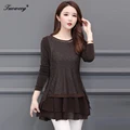 Best savings for 2020 Fashion autumn long Sleeve 5XL Plus Size floral Women Blouses loose patchwork Long Shirt Female woman clothes