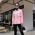 Costomer Scores and Reviews for Best Selling Real Sheepskin Mid Length Casual Pleated Pink Jacket Women High Quality Soft Leather Coat Spring High Street