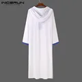 Best INCERUN Men Muslim Kaftan Islamic Arabic Robes Patchwork Vintage Middle East Caftan Hooded Loose Casual Long Sleeve Jubba Thobe and You will save 42% or US $16.7 today
